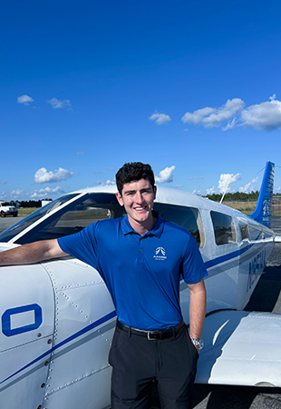I began my training at 18, earning my private pilot’s license and then my commercial certification. Now, as a flight instructor and assistant chief of the multi-engine course, I find great fulfillment in teaching aspiring pilots and watching them grow into skilled aviators.