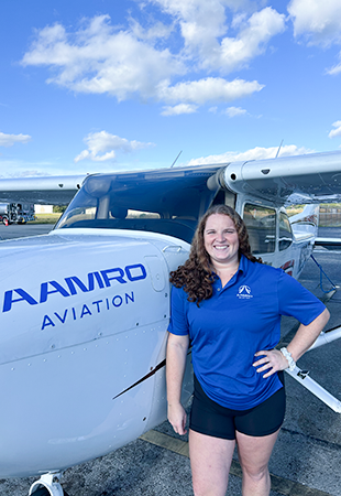 Hi, my name is Coral Quillin! I work the front desk here at Aamro Aviation and I’m also completing my flight training here. I come from a whole family of pilots, and I’ve had a passion for aviation since I was a little girl. As a South Florida native, it’s awesome to be able to learn to fly here.